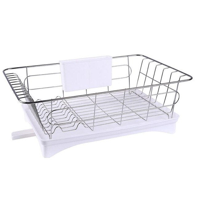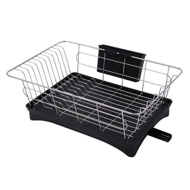 Stainless Steel Dish Drainer Drying Rack With 3-Piece Set Removable Rust Proof Utensil Holde For Kitchen Counter Storage Rack